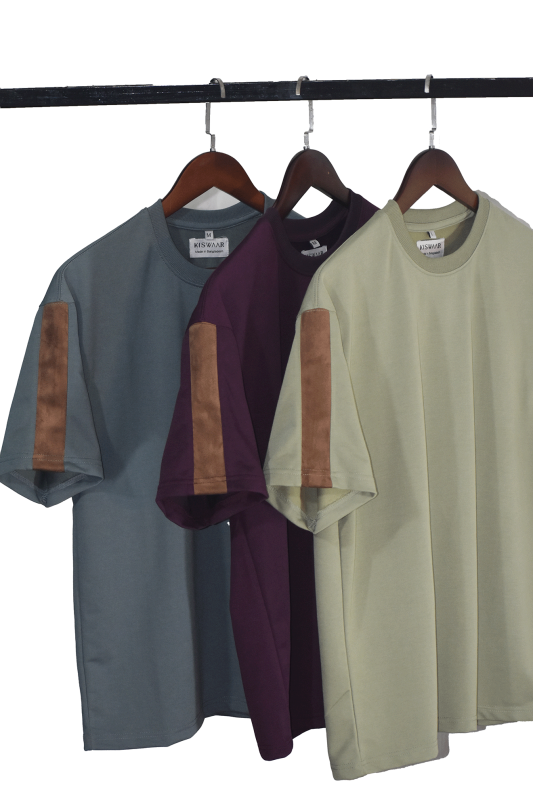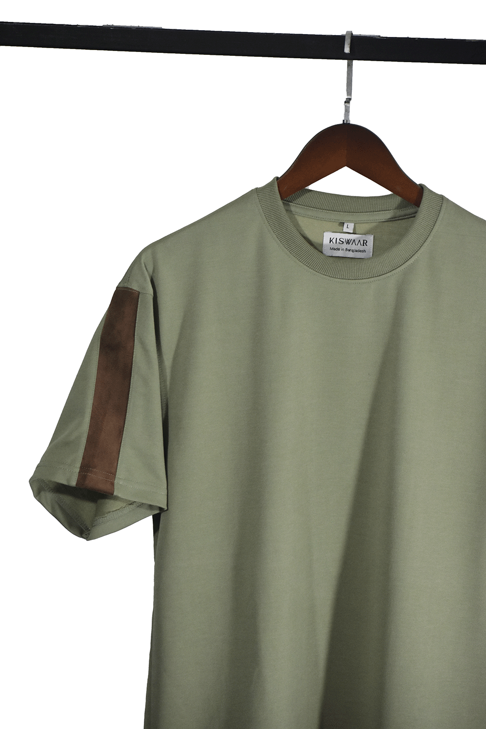Drop Shoulder Contrast Panel T-Shirt- Light Olive